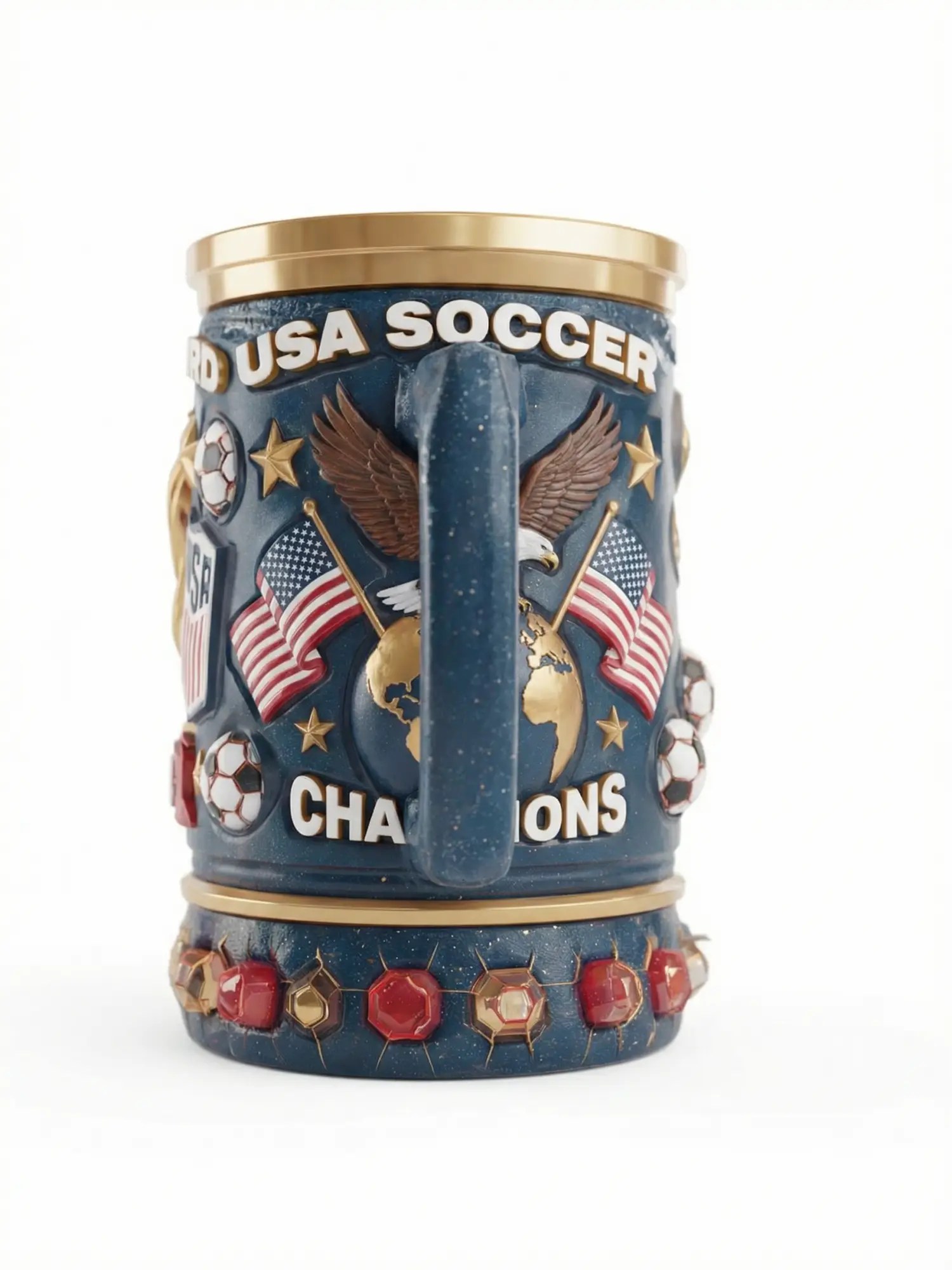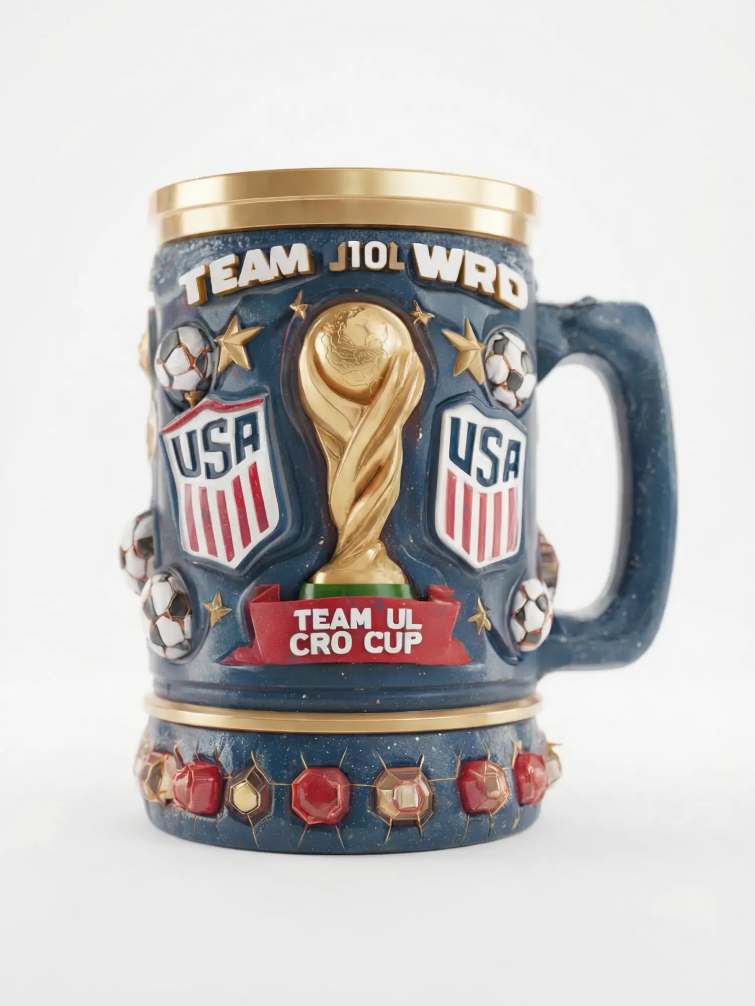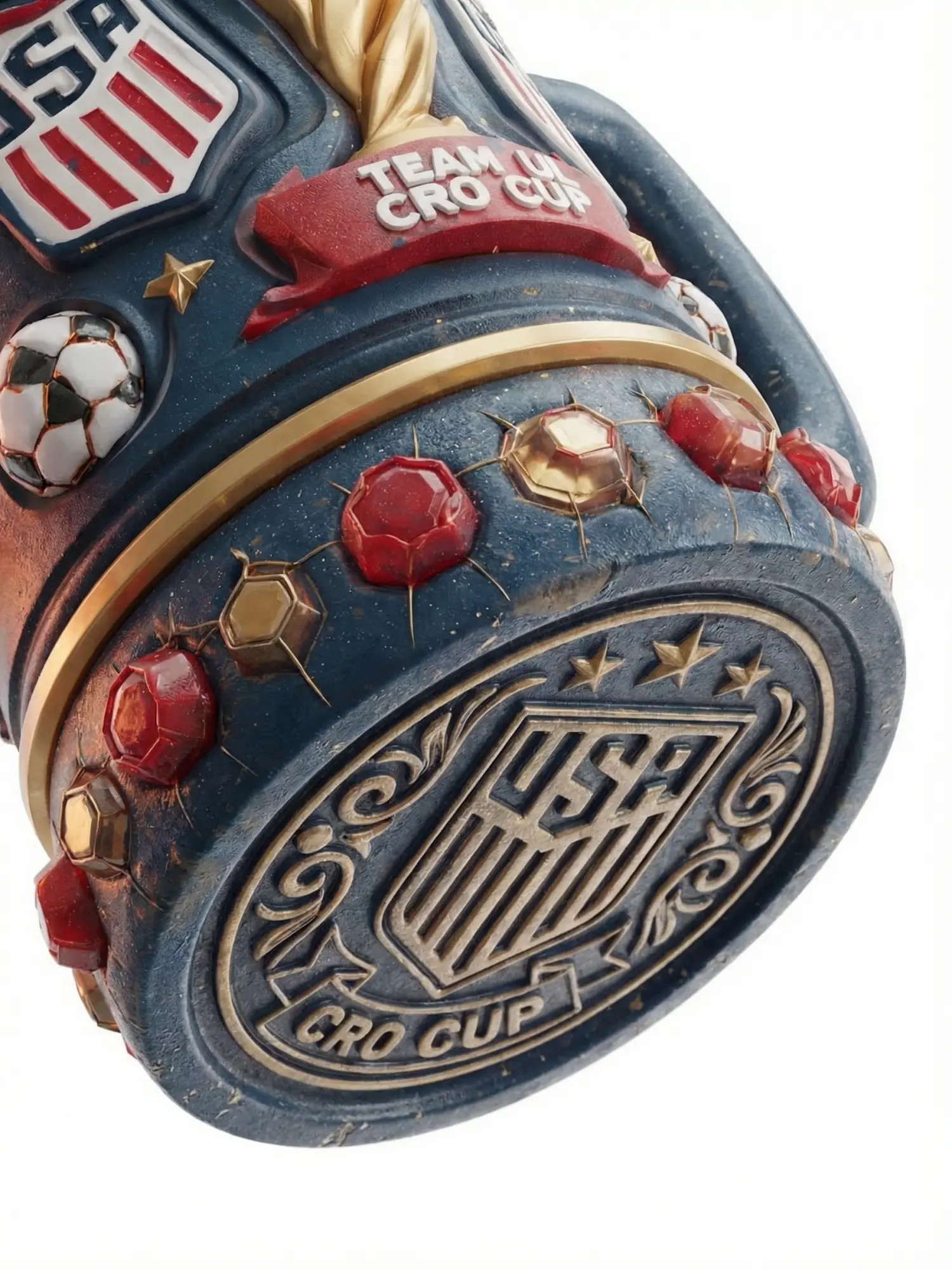 - Golden Trophy Accent: A miniature golden World Cup trophy relief sits at the center, symbolizing respect for football’s ultimate honor.