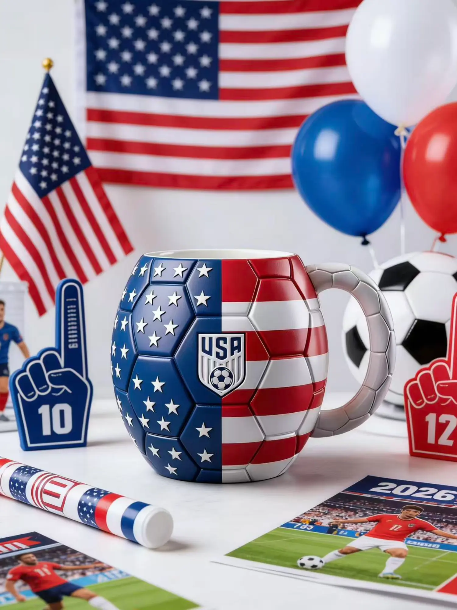 - Creative Flag Integration: The Stars and Stripes are cleverly mapped onto the ball’s panels, with navy blue stars on the left and bold red-and-white stripes on the right.