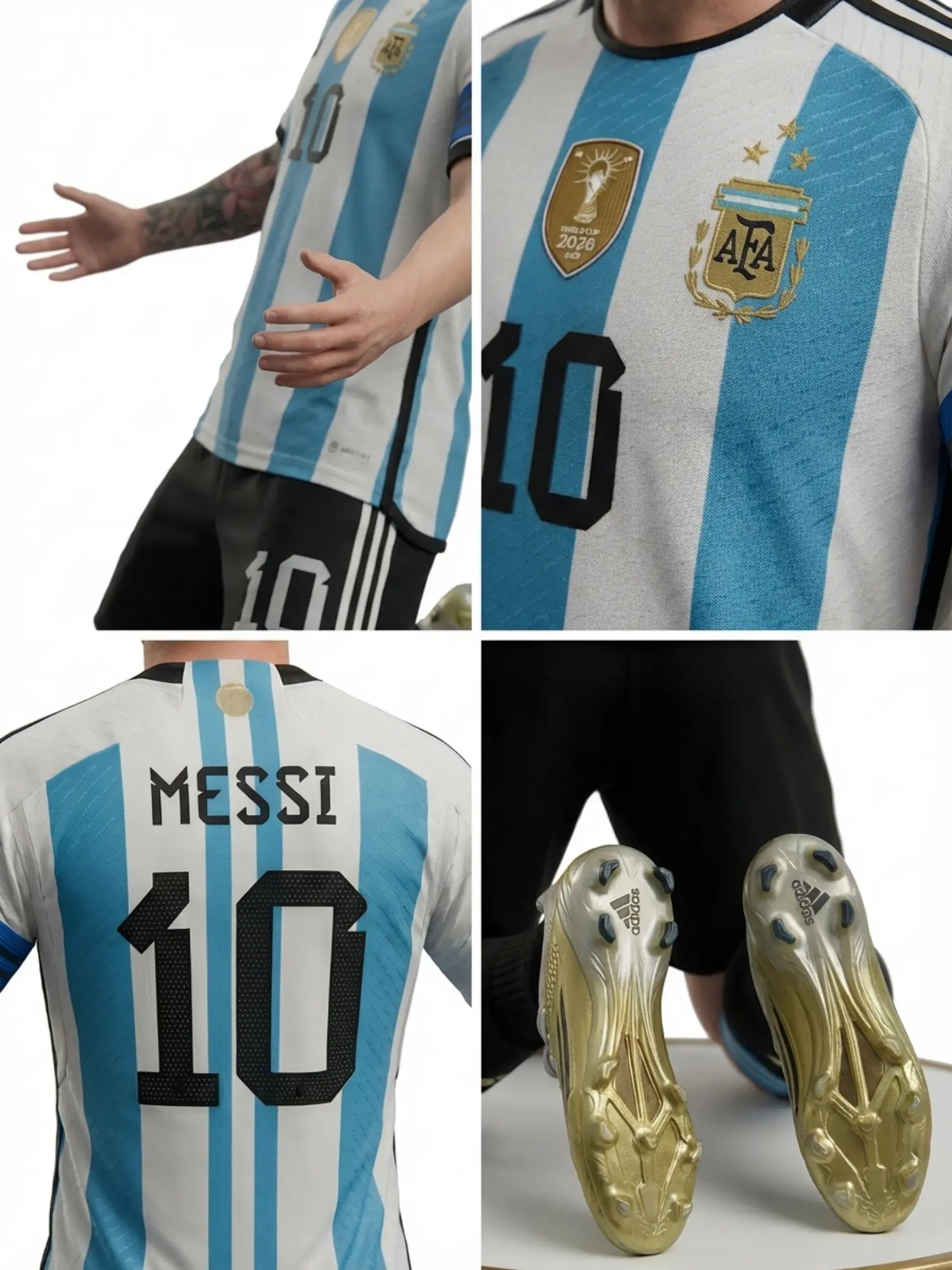 - Three-Star Champion Kit: Dressed in the classic Albiceleste stripes with the embossed three-star AFA crest and the golden FIFA World Champions badge.